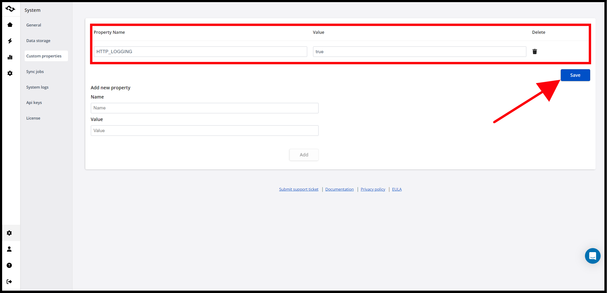 1. In the integration setup, go to **System** > **Custom Properties**.