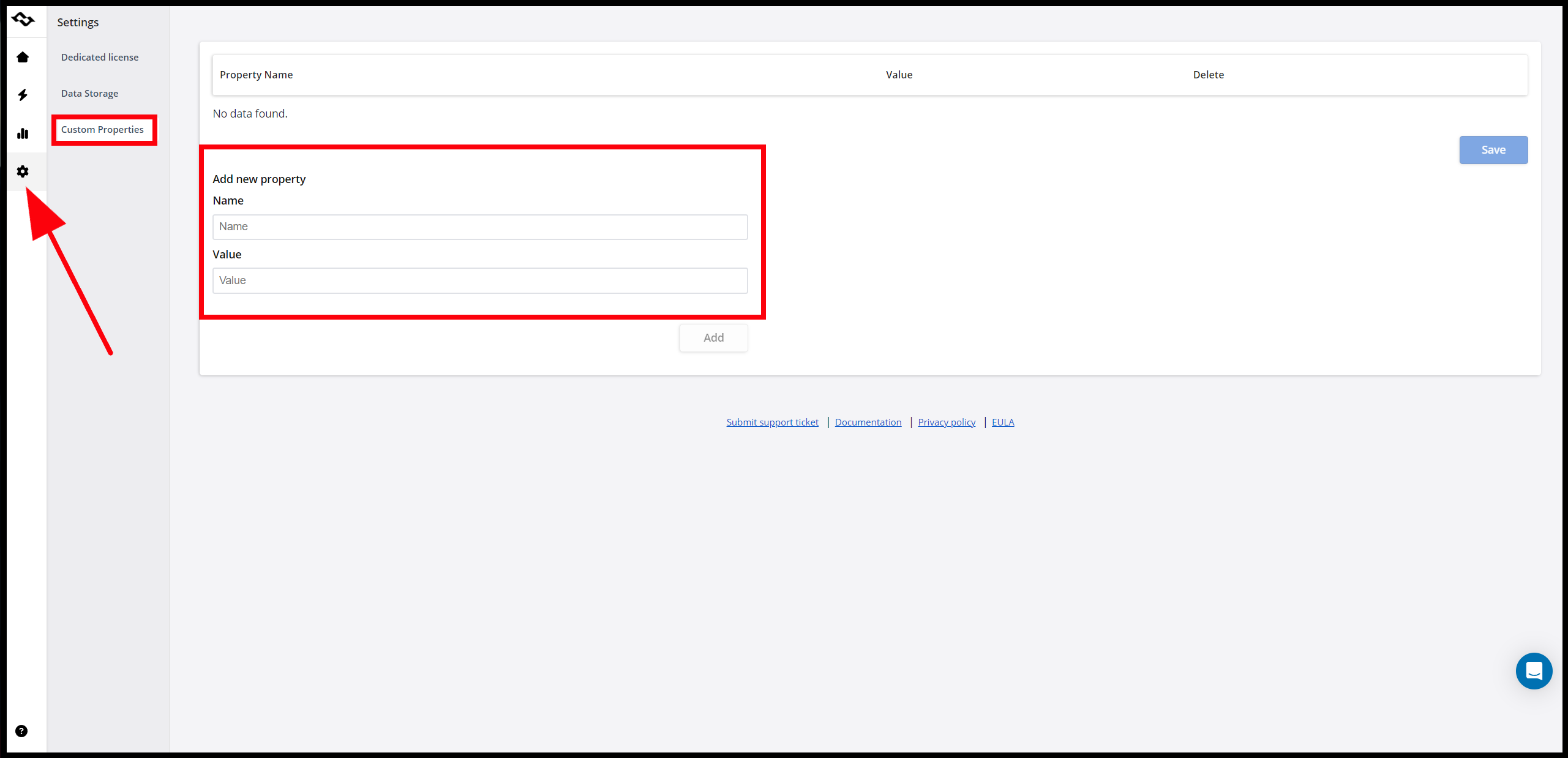 1. In the integration setup, go to **Settings** > **Custom Properties**.