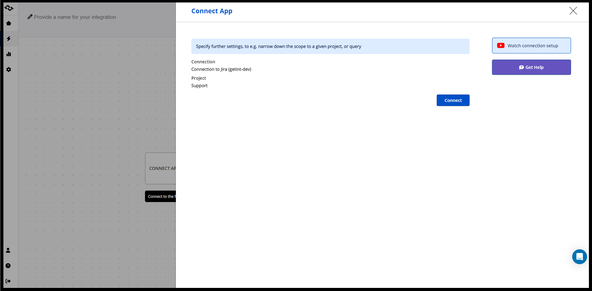 * Once the connection is established, choose the Jira project you want to connect to from the dropdown menu.