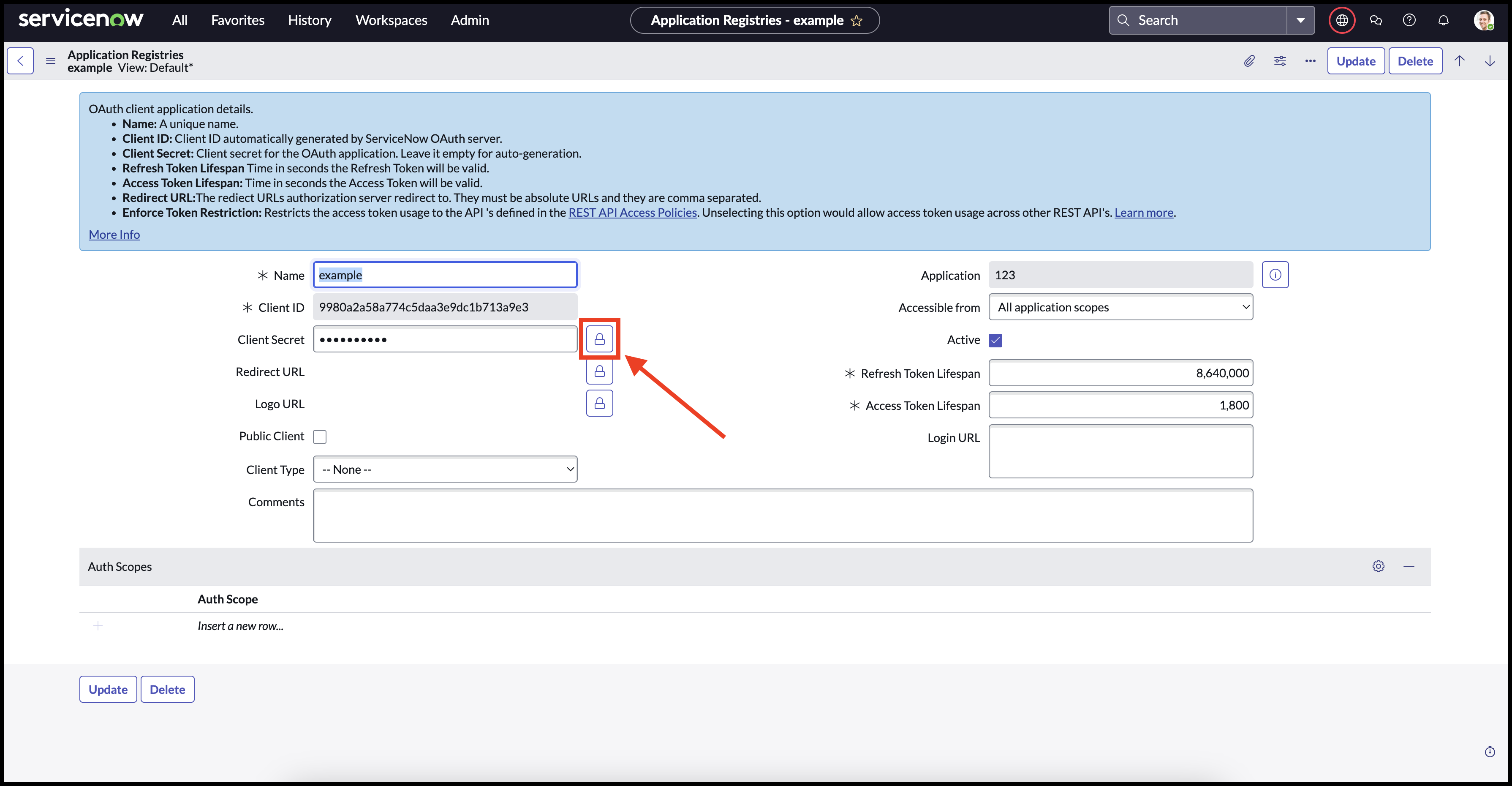 #### 6. Click the padlock to show the Client Secret <a href="#id-6.-click-padlock-to-show-client-secret" id="id-6.-click-padlock-to-show-client-secret"></a>