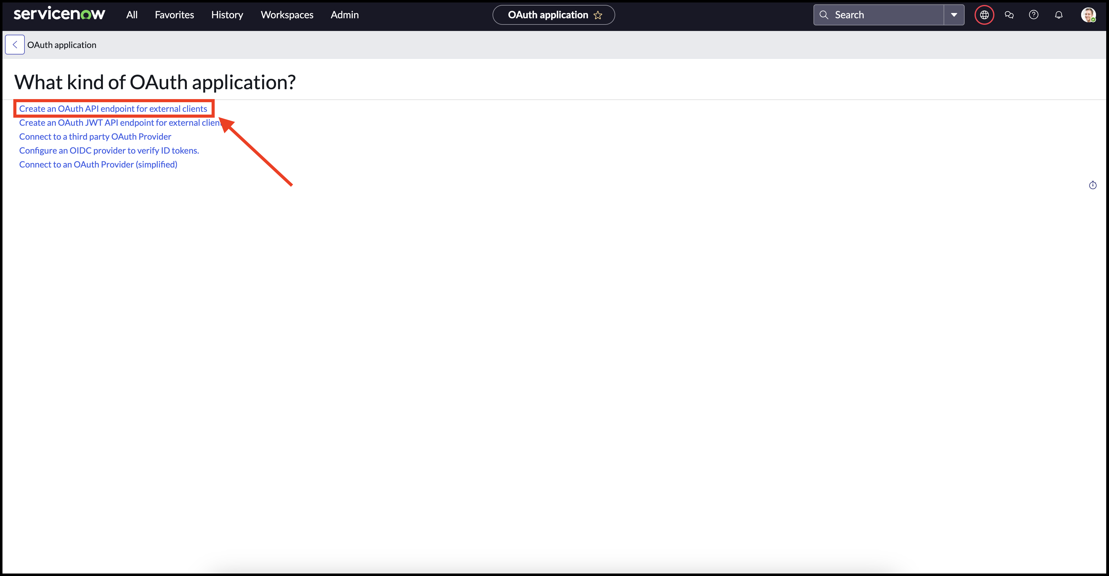 #### 3. Click Create an OAuth API endpoint for external clients <a href="#id-3.-click-create-an-oauth-api-endpoint-for-external-clients" id="id-3.-click-create-an-oauth-api-endpoint-for-external-clients"></a>