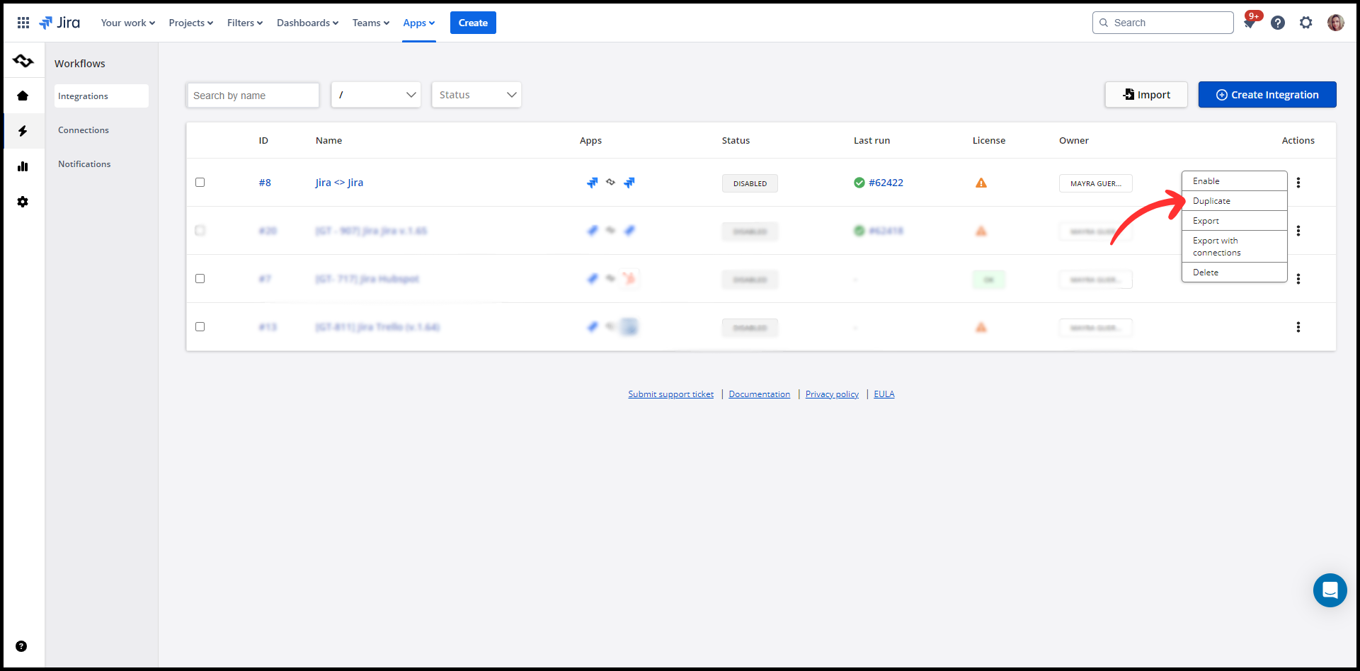 Go to the integration settings, click on the three dots on the right, and choose the option to duplicate the integration.